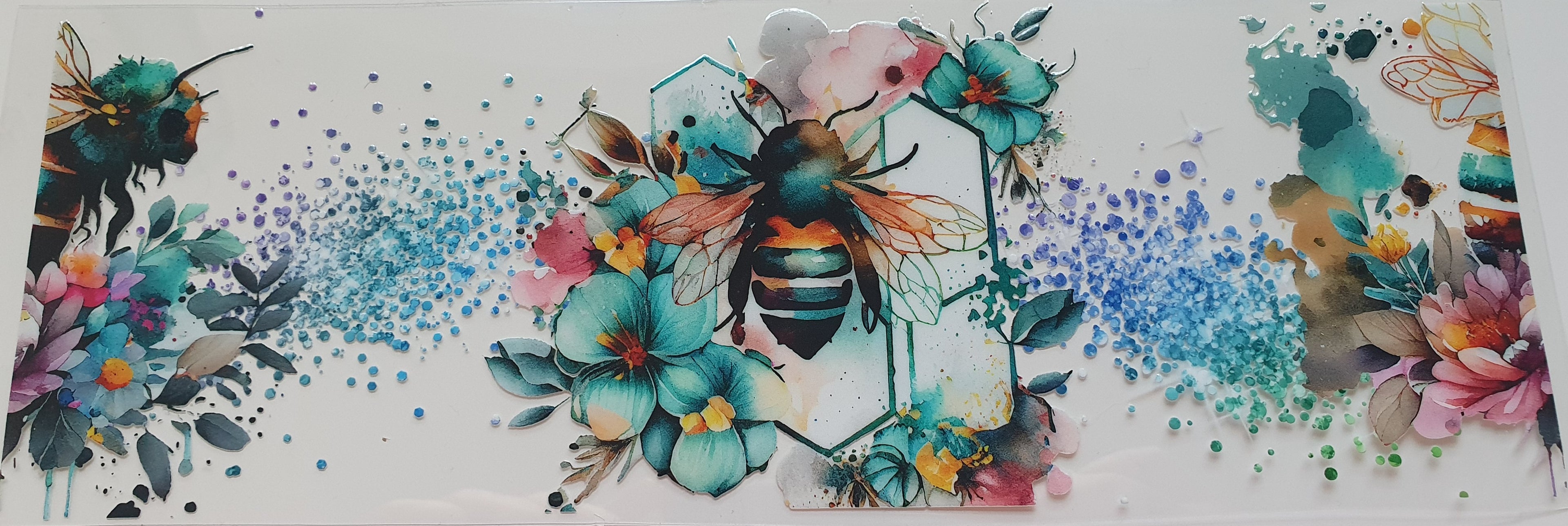 16 Oz Libbey Can Blue Flower Bee print -